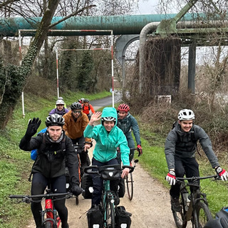Nous ne partons pas seuls pour cette première étape de Lyon à Morestel : notre famille et des amis nous accompagnent pour nous soutenir dans ces premiers coups de pédales. Nous nous élançons donc avec un groupe d'une quinzaine personnes.